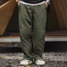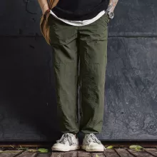 Crafted from 100% polyamide fiber, the midweight fabric (135g/m²) offers durability with a lightweight feel. The loose fit provides breathing room without sacrificing structure, while the full-length straight cut gives off a clean, masculine silhouette. Double-knee stitching adds texture and subtle reinforcement, making these pants both stylish and practical for everyday wear.