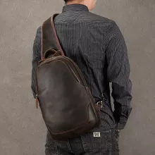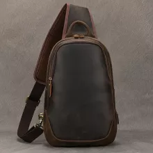 Upgrade your daily carry with this large leather chest bag, crafted from genuine crazy horse cowhide for a distinctive vintage look that gets better with age. Designed for men who appreciate both style and practicality, this sleek yet spacious bag is ideal for commuting, weekend adventures, or outdoor activities. With its durable leather construction, thoughtfully designed compartments, and optional built-in USB port, this bag brings classic craftsmanship into the modern world.