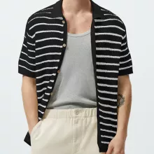 Step into warm-weather confidence with this Men’s Luxury Hollow Out Knitted Polo Shirt, the perfect fusion of comfort, breathability, and casual elegance. Designed for the modern man who values style without sacrificing ease, this short sleeve polo is the ultimate statement piece for summer. The striped pattern and hollow out knit design deliver a refined yet relaxed vibe, making it ideal for everything from weekend brunches to sunset strolls.
