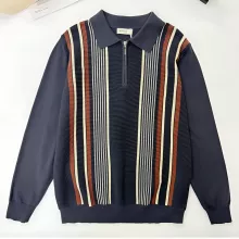 Upgrade your fall wardrobe with this men’s knitted polo, designed for those who want to look sharp while staying comfortable. Crafted with a refined patchwork design and breathable knit fabric, this long-sleeve polo blends business style with relaxed casual appeal. With its contrast-color pattern and slim, flattering fit, it’s the perfect mix of smart and stylish.