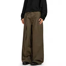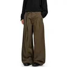 The unique character of these pants comes from their perfect blend of elegant design and relaxed wearability. The standout feature is the sharp pleated design that adds depth and dimension to the silhouette, creating a look that’s both structured and effortless. Paired with the modern wide-leg cut, these trousers offer a fashion-forward alternative to basic pants. The unique ‘Coffee green’ color provides a versatile, earthy tone that’s both distinctive and easy to pair with your existing wardrobe, setting you apart from the crowd.