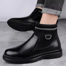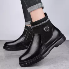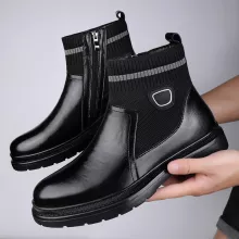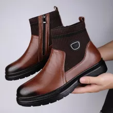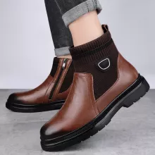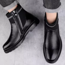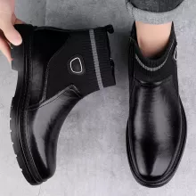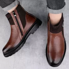 Step into cold days with confidence and class. These retro high-top Chelsea boots are designed for men who want sharp business style without sacrificing comfort in winter. The smooth genuine leather upper gives a polished, premium look, while the cozy plush lining keeps your feet warm when temperatures drop. With a clean round toe and subtle platform sole, these boots balance classic design with modern comfort.