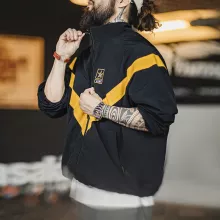 Step into the season with confidence in this men’s retro outdoor training jacket — a perfect fusion of vintage style and modern functionality. Designed for daily wear, light sports, and cool-weather outings, this lightweight jacket brings together a bold aesthetic with performance-minded details. The standout V-shaped yellow reflective strips make a visual statement while enhancing visibility in low-light conditions. Whether you’re out for a morning jog, running errands, or just layering up for a casual day, this jacket is built to keep you looking sharp and feeling comfortable.