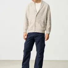Crafted from a comfortable blend of cotton and polyester, this sweater delivers softness, warmth, and durability. The 7-gauge knit offers the perfect balance of structure and breathability — not too thick, not too light. The shawl collar adds a classic, masculine touch, while the coarse wool texture gives it that rugged, vintage-inspired feel.