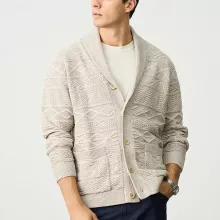 Ready to update your wardrobe with a piece that combines comfort, style, and timeless appeal? Add this shawl collar jacquard knit cardigan to your cart now and experience a higher standard of casual fashion.