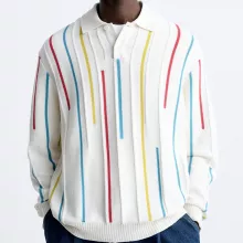 This Men’s Striped Long Sleeve Polo Shirt stands out with its premium cotton material and eye-catching striped pattern. The contrast color design gives it a stylish flair, while the soft, breathable fabric ensures comfort, even on busy days. The jacquard knit pattern adds texture and durability, making this shirt a standout piece in your wardrobe. The long sleeves offer just the right amount of warmth for those cool spring and autumn days, while the buttoned lapel adds a refined, polished look.