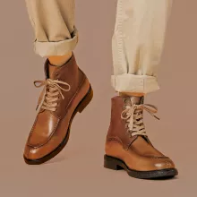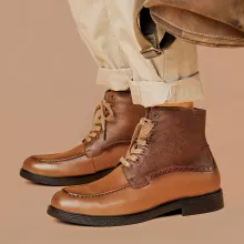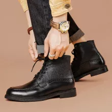 Step up your footwear game with these Men’s Vintage Leather Ankle Boots. Handcrafted with precision, these boots blend timeless British design with modern comfort, offering a versatile style that effortlessly transitions from casual outings to more polished work settings. Made from genuine cow leather, these boots provide durability, breathability, and a unique character that only improves with time. Their round-toe design and mixed-color pattern add a fashionable touch to your wardrobe, while the lace-up closure ensures a snug, comfortable fit.