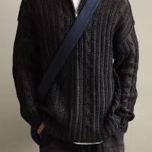 This jumper blends traditional knitting with modern design details to create a strong, masculine look. The stand collar with a smooth zipper gives you flexible styling options. Zip it up for extra warmth or leave it slightly open for a relaxed, laid-back vibe. The flat knit texture adds visual depth, making it more than just another basic sweater.