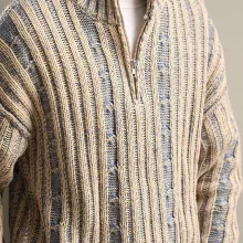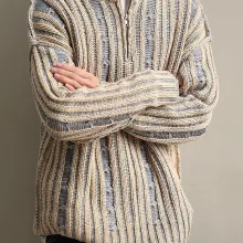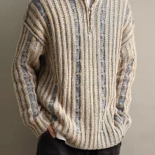 What sets this sweater apart is its balance of simplicity and character. The textured knit and clean stripe design bring a vintage charm without looking outdated. The zipper stand collar adds a modern edge, turning a classic pullover into a versatile style piece. It’s easy to pair with jeans, chinos, or layered over a shirt for a more polished look.