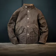 Step into autumn with confidence wearing this vintage-inspired men’s waxed canvas jacket. Designed with a sharp stand collar and crafted from 100% cotton canvas, this jacket offers a timeless look combined with practical features. The oil-waxed finish provides a natural water and wind-resistant barrier, perfect for unpredictable weather during outdoor adventures or everyday wear.