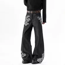 Step out with confidence in these wide leg floral contrast jeans made for men who want comfort without giving up style. Designed with a modern Korean streetwear vibe, these jeans blend relaxed structure with eye-catching details. The subtle floral print and contrast tones give them a standout look while still being easy to pair with your daily outfits. Whether you’re dressing for a casual day out, meeting friends, or just upgrading your everyday wardrobe, these jeans deliver both comfort and attitude in one piece.
