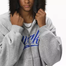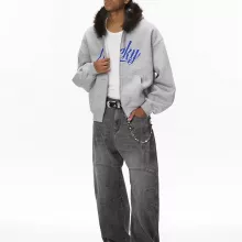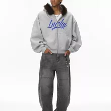 This hoodie jacket features full-length sleeves, a solid color design, and a warm knit construction—perfect for autumn and winter. Its embroidered detailing adds character, while the hood provides extra protection for breezy days. With a regular length and a zipper closure, it’s easy to throw on and versatile enough to fit effortlessly into your cold-weather outfits. Available in classic light gray and black, it pairs easily with jeans, joggers, or cargo pants for a clean streetwear aesthetic.