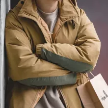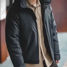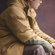 This winter parka is filled with high-quality white duck down for powerful insulation while staying lightweight and easy to wear. The outer fabric has a unique matte-glossy finish that resists wind and light moisture while keeping a smooth, premium appearance. It’s thick enough for cold weather, but not bulky, so you can move freely.