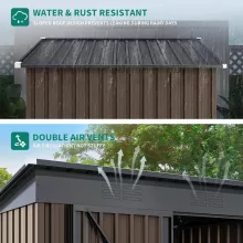 From the moment I laid eyes on this outdoor storage shed, I knew it was exactly what my backyard needed. The high-quality galvanized steel construction ensures durability and resistance to rust, which is a major plus considering the unpredictable weather in our area. But more than just its robust build, it's the that has truly impressed me. It offers ample space for all my gardening tools, sports equipment and even some patio furniture during winter months – helping us finally declutter our garage! And let’s not forget about the lockable feature – an extra layer of security that gives me peace of mind knowing all stored are safe from theft.