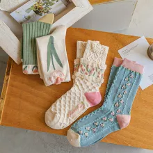 These Mid-Length Floral Tulip Socks are more than just a cozy accessory. Their intricate floral design elevates your everyday look, adding a pop of color and charm to your outfit. Whether you’re looking for something to pair with your favorite casual wear or need the perfect pair to slip on for a relaxing day indoors, these socks are the answer.