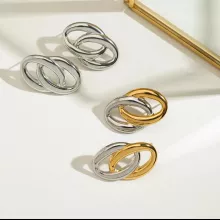 These earrings are made from high-quality stainless steel and finished with an 18K PVD gold plating, giving them a radiant, lasting shine. Designed to resist fading, scratches, and tarnishing, they’re made to keep up with your lifestyle. You can wear them while swimming, showering, or sweating — they’re completely waterproof and built to last. With a two-tone gold finish and geometric form, they are both classic and fashion-forward.