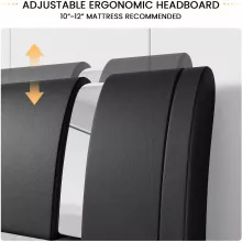 - Ergonomic Headboard: The adjustable headboard is designed with a curved backrest that fits your waist, providing comfortable support for leaning and relaxing. It adjusts to accommodate different mattress thicknesses, with a 10″-12″ mattress recommended.