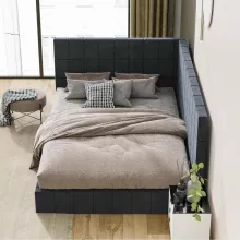 Our daybed combines functionality and aesthetics, offering a stylish seating area by day and a comfortable sleeping space by night. The low-profile design enhances accessibility and safety, while the durable construction ensures long-term satisfaction. Upgrade your space with the Modern Grey Wooden Daybed Frame today and provide your guests with a luxurious and inviting experience.