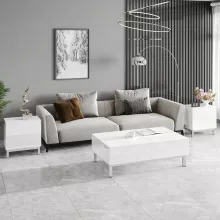 Perfect for those who appreciate a sleek and modern look without sacrificing functionality, this Modern Minimalist White Rectangular Coffee Table Set of 3 is the ultimate addition to any living space. The high-gloss finish and electroplated base bring an unmatched level of luxury, while the practical storage drawers ensure your space remains organized and clutter-free. Whether you need a stylish coffee table for your living room or versatile tables for your office, this set provides both elegance and convenience. Its minimalist design allows it to blend seamlessly into any setting, making it a must-have for those looking to create a chic, contemporary atmosphere.