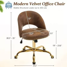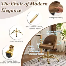 Looking to add a touch of elegance and style to your office or vanity? This Modern Velvet Small Office Chair is the perfect blend of luxury and comfort. Designed with a plush velvet/teddy fabric and adorned with chic gold studs, this chair brings a sophisticated vibe to any space. The gold base and unique globe wheels not only add a pop of style but also provide smooth mobility, making it an ideal choice for your home office, vanity, or even a leisure space. Whether you’re working, getting ready, or relaxing, this chair will complement your space with grace and ease.