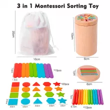 Introduce your child to a world of learning and discovery with the Montessori Wooden Color & Shape Sorting Toy, thoughtfully designed for toddlers aged 3 to 6. This early educational sensory toy makes learning exciting through play, encouraging young children to explore colors, shapes, and sizes while strengthening their fine motor skills. Whether used during quiet playtime at home, as part of a preschool routine, or during parent-child bonding time, this toy provides hours of screen-free, skill-building fun.