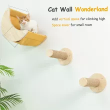 Indoor cats often crave stimulation and a safe space to satisfy their climbing instincts. This wall furniture set offers just that — a secure and fun environment for your cat to stay active and entertained. The moon-shaped hammock doubles as a cozy hideout and lookout point, letting your feline rest while observing their surroundings. With dual scratching posts, you’re also giving them a healthy outlet to sharpen claws without damaging your furniture.