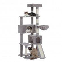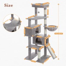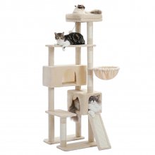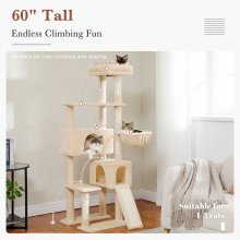 Give your cats a world of fun, comfort, and relaxation all in one place with this multi-level cat tower. Designed for indoor cats who love to climb, scratch, nap, and play, this 60-inch tall cat tree is a dream come true for curious kitties. From top to bottom, every level is packed with cozy hideouts, sturdy perches, and exciting toys that keep your cats active and entertained all day long.