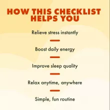 • Better sleep and energy: Use the checklist in the morning to feel awake, or at night to drift into deeper rest.