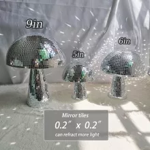 Crafted with a foam base and covered in hundreds of mini mirrored glass tiles, the Mushroom Disco Ball reflects light beautifully, creating an irresistible shimmering effect. Available in multiple sizes – 5 inches (14cm x 12cm), 6 inches (16cm x 15cm), and 9 inches (23cm x 18cm) – you can choose the perfect size to fit your space.