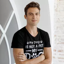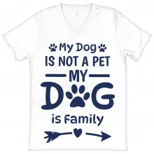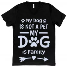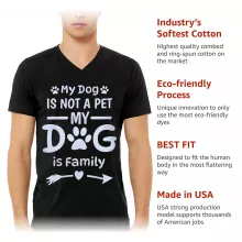 My Dog Is Not a Pet My Dog Is Family V-Neck T-Shirt is proudly made with 7x less water than average manufacturers, in recycle-friendly facilities that also guarantee zero sweatshop conditions