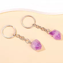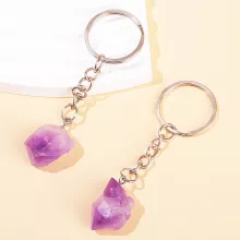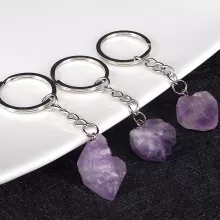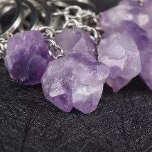 Each keychain features a unique, irregular piece of amethyst that is hand-carved to reveal the natural beauty of this crystal. Due to the nature of the stone, each keychain is one-of-a-kind, with slight variations in color, size, and shape. The keychain is attached to a lobster clasp, making it easy to attach to your keys, bag, or any other accessory. The natural amethyst crystal is known for its ability to bring peace and healing energy, making this a perfect gift for those seeking balance and positive vibes.