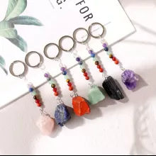 - Design: Each keychain features a raw Amethyst stone with natural facets and edges, providing a rustic yet stylish appearance.