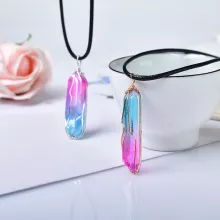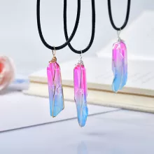 Discover the beauty and power of nature with our Natural Aura Quartz Crystal Pendant. Hand-selected and electroplated to enhance its natural brilliance, each pendant features a raw, uncut piece of aura clear quartz that shimmers in rich purple and blue tones. Whether worn as a fashion statement or spiritual aid, this one-of-a-kind pendant radiates charm, mystery, and meaning.