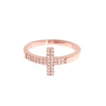 NIALAYA Pink 18K Gold-Plated Sterling Silver Ring with Clear CZ Crystals