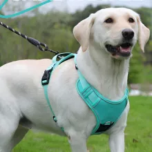 This harness combines tactical-level durability with everyday ease. The escape-proof structure, adjustable straps, and shock-absorbing design help you maintain full control without putting pressure on your dog’s neck. Highly reflective accents ensure visibility during nighttime walks, while multiple attachment points let you personalize the vest with patches or hang small accessories.