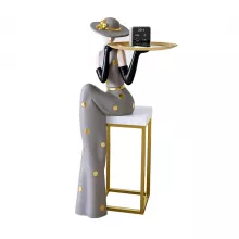The Nordic Abstract Girl Sculpture stands out with its elegant design and practical features. The girl statue is designed to hold a tray, making it not just a visual delight but also a functional piece of art. The sculpture measures 10.2*9.8*30.7in, with the tray having a diameter of 10in. Made from high-quality resin, wood, iron, and stainless steel, this durable and stylish piece is built to last. The handmade craftsmanship ensures each statue is unique, with slight variations that add to its charm.