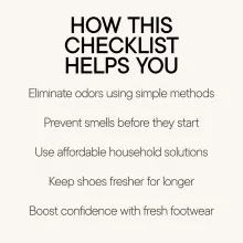 Stop dealing with smelly shoes and start feeling confident every time you step out. The Odor-Free Shoes Checklist is a quick, affordable solution that delivers real results.