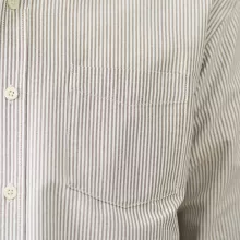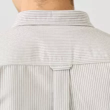 This shirt is crafted with full-length sleeves and a turn-down collar that maintains a clean, sharp appearance. The single-breasted closure adds simplicity, making it easy to pair with jeans, chinos, or casual trousers. The vertical stripes deliver a flattering, elongating effect that enhances your overall silhouette. Built with a tatting-weave Oxford fabric at 210gsm, it offers a comfortable amount of thickness ideal for autumn and winter.