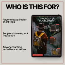 This ebook is perfect for frequent travelers, minimalists, busy professionals, and anyone tired of dragging around clothes they never wear. If you’ve ever wondered what clothes to pack for short trips and want a clear, stress-free method, this guide is for you.