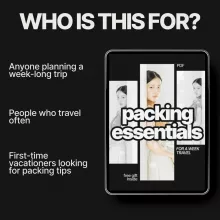 This eBook is perfect for anyone who wants to make packing for a week-long trip easy and stress-free. Whether you’re a seasoned traveler looking for smarter packing strategies, or a first-time flyer hoping to pack like a pro, this guide is designed with you in mind. It’s ideal for solo travelers, couples, families, or business professionals who want to travel light without leaving behind the essentials.