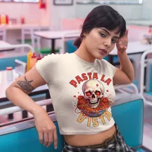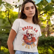 Pasta La Vista Cropped T-Shirt – Funny Foodie Trendy Tee – Food Pun Women’s Basic T-Shirt