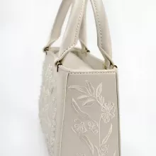 - Design: Pearl, beading, embroidery, and floral pattern