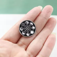 At just under 1 inch in diameter (approximately 0.87 inches), this brooch is the ideal size to complement lapels, bags, hats, or scarves without overwhelming your look. Made from high-quality zinc alloy, it’s lightweight at only 0.12 oz, yet durable enough for everyday wear. The detailed enamel work showcases the moon phases with rich black and deep green tones, adding elegance and mystery. Its round shape and secure pin backing make it both functional and fashionable.