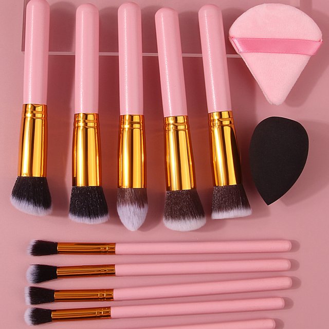 Pink 12-Piece Makeup Brush Set with Puff & Sponge Egg
