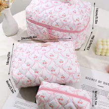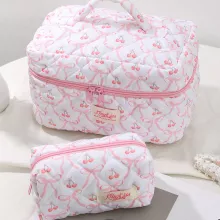 Fall in love with every detail of the Pink Bow Quilted Cherry Makeup Bag – a charming, feminine must-have for beauty lovers who adore both form and function. Designed for the modern woman on the move, this makeup bag blends aesthetic appeal with practical features, making it your perfect companion whether you’re at home, on a weekend getaway, or heading off for a holiday adventure.