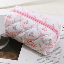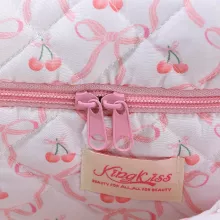 Crafted from high-quality polyester, this soft yet durable bag features a delightful pink quilted exterior adorned with a sweet cherry print and finished with a dainty bow. Its unique look makes it a standout piece on your vanity, in your travel tote, or as a thoughtful gift for someone special. With just the right amount of room for your everyday beauty essentials, it’s compact, lightweight, and stylish – the ultimate blend of cute and convenient.