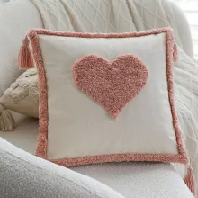Celebrate love and style with this charming Pink Love Tufted Decorative Cushion Cover. Designed with romance in mind, this 18 x 18 inch square pillowcase features a soft tufted “LOVE” pattern and playful tassels at each corner, making it the perfect accent for Valentine’s Day or simply adding a cozy, heartfelt touch to your everyday decor. Its delicate blush pink tone and textured cotton finish make it a standout addition to sofas, chairs, or beds.