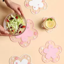 Pink Sakura Floral Coaster – Heat Insulation Non-Slip Mat for Coffee & Tea Cups