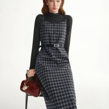 - Two-piece set with a plaid vest and ankle-length slip dress