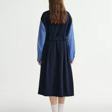 The turn-down collar, full-length sleeves, and mid-calf length give this dress a clean, classic look that pairs perfectly with boots, leggings, or your favorite warm layers. Whether you’re heading out for a casual day, relaxing at home, or running errands, this dress brings together ease and elegance effortlessly. Its striped pattern adds a touch of personality, making it more than just another winter basic — it’s a go-to wardrobe essential.